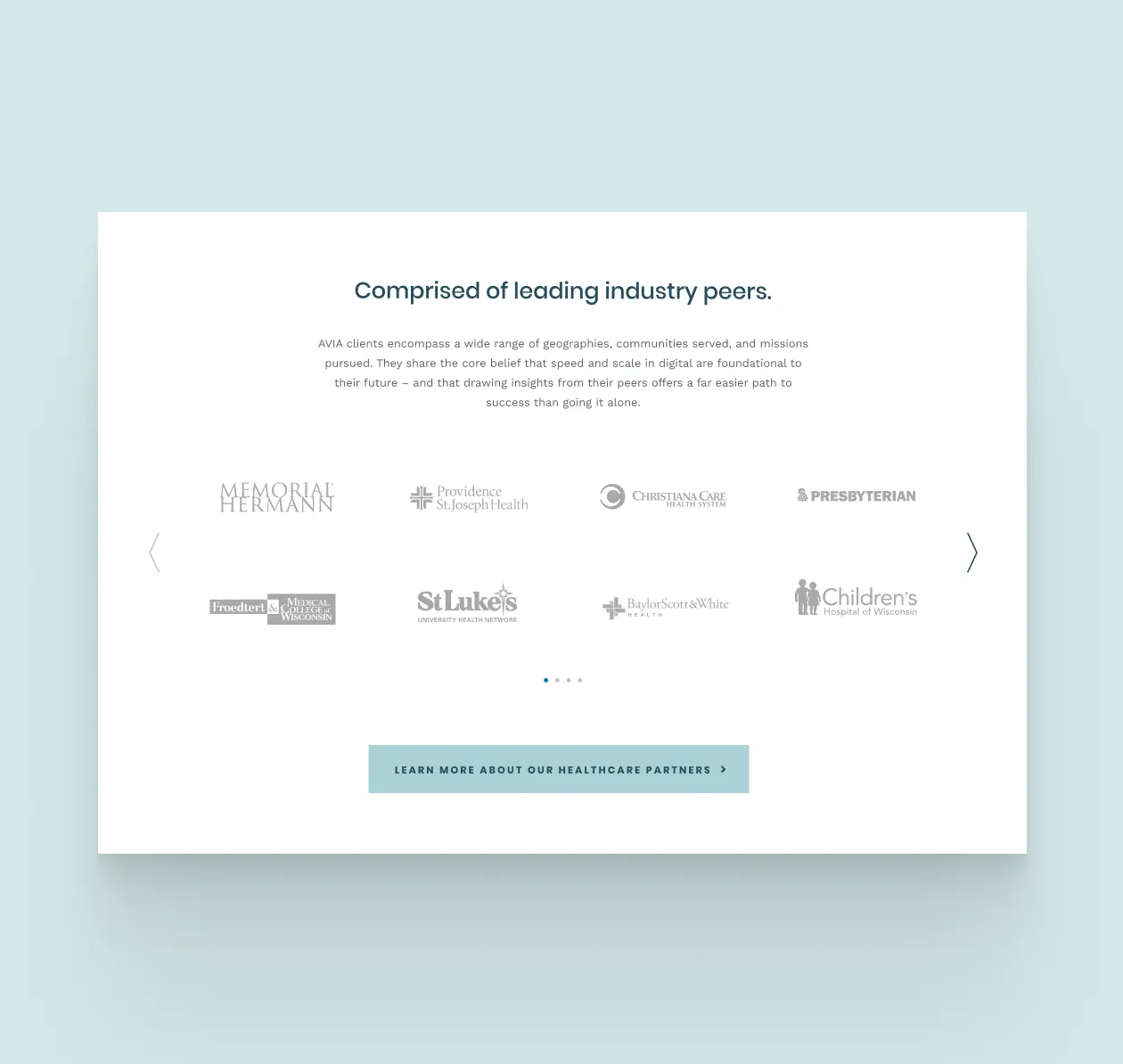 Our goal? Help AVIA connect with health systems ready for change, and make their expertise feel approachable, actionable, and inspiring.