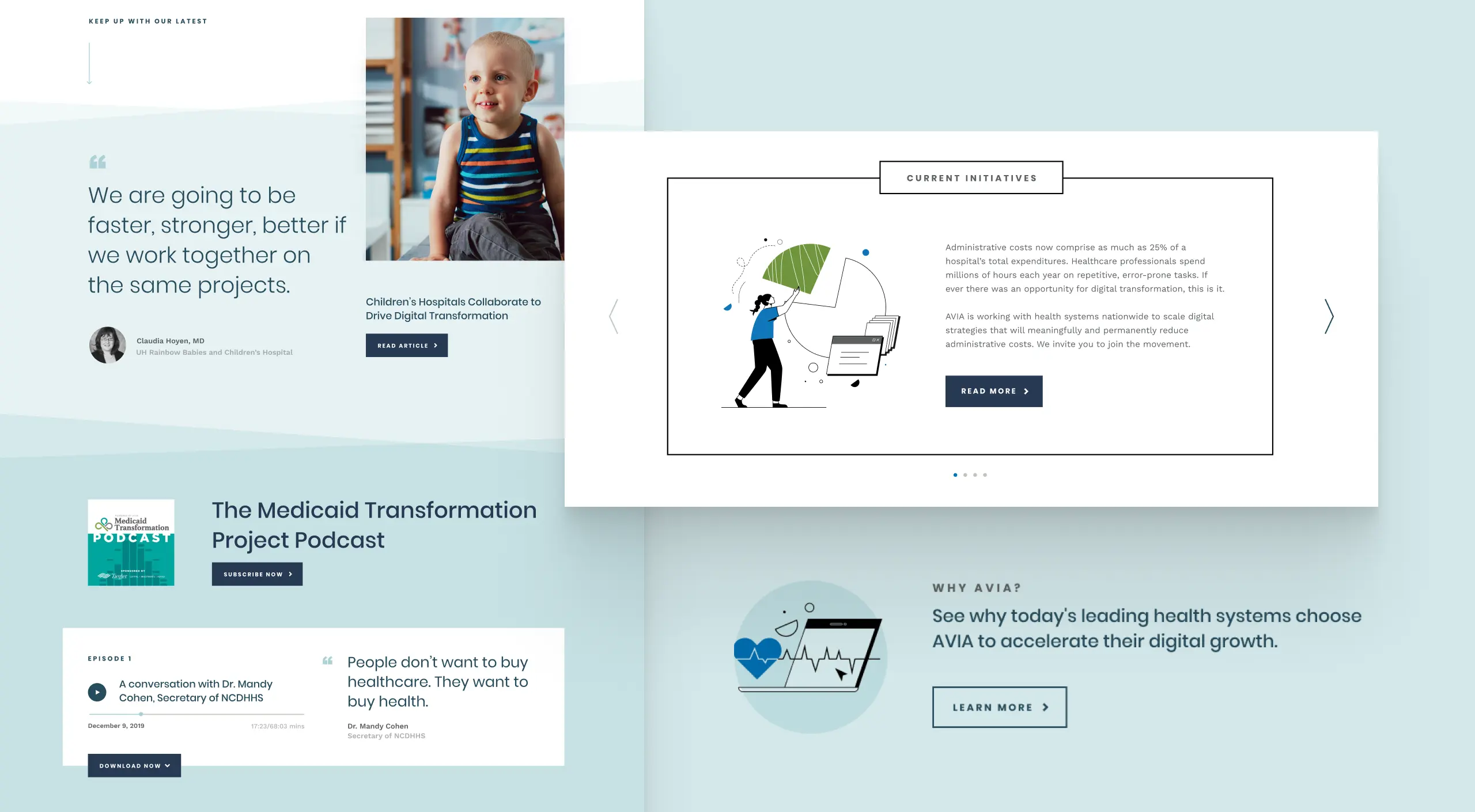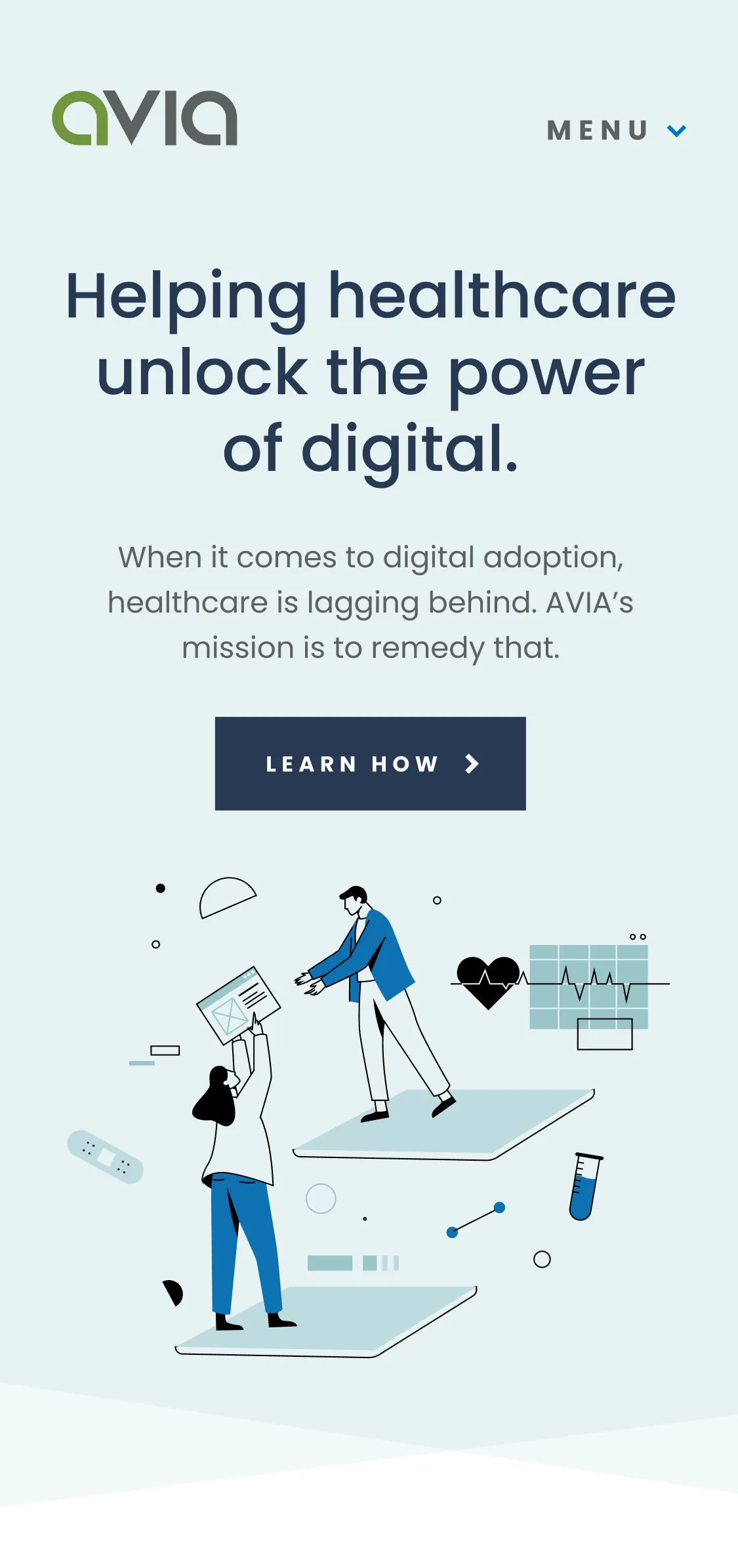 AVIA is helping hospitals make the leap into digital, and they needed a site that made that mission clear. We worked with their team to turn a complex story into a straightforward, inviting online experience — one that shows just how much digital transformation can do for healthcare.