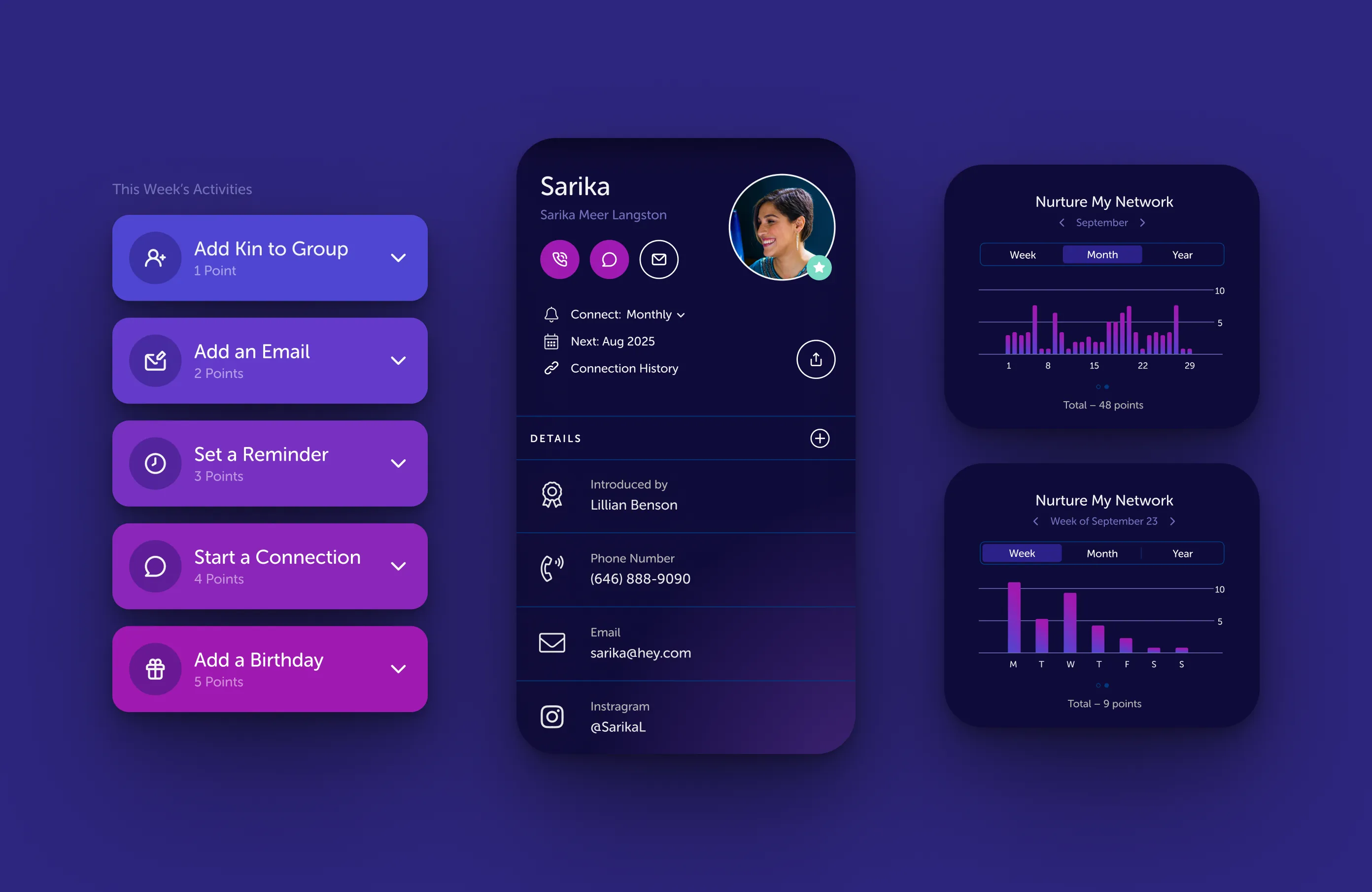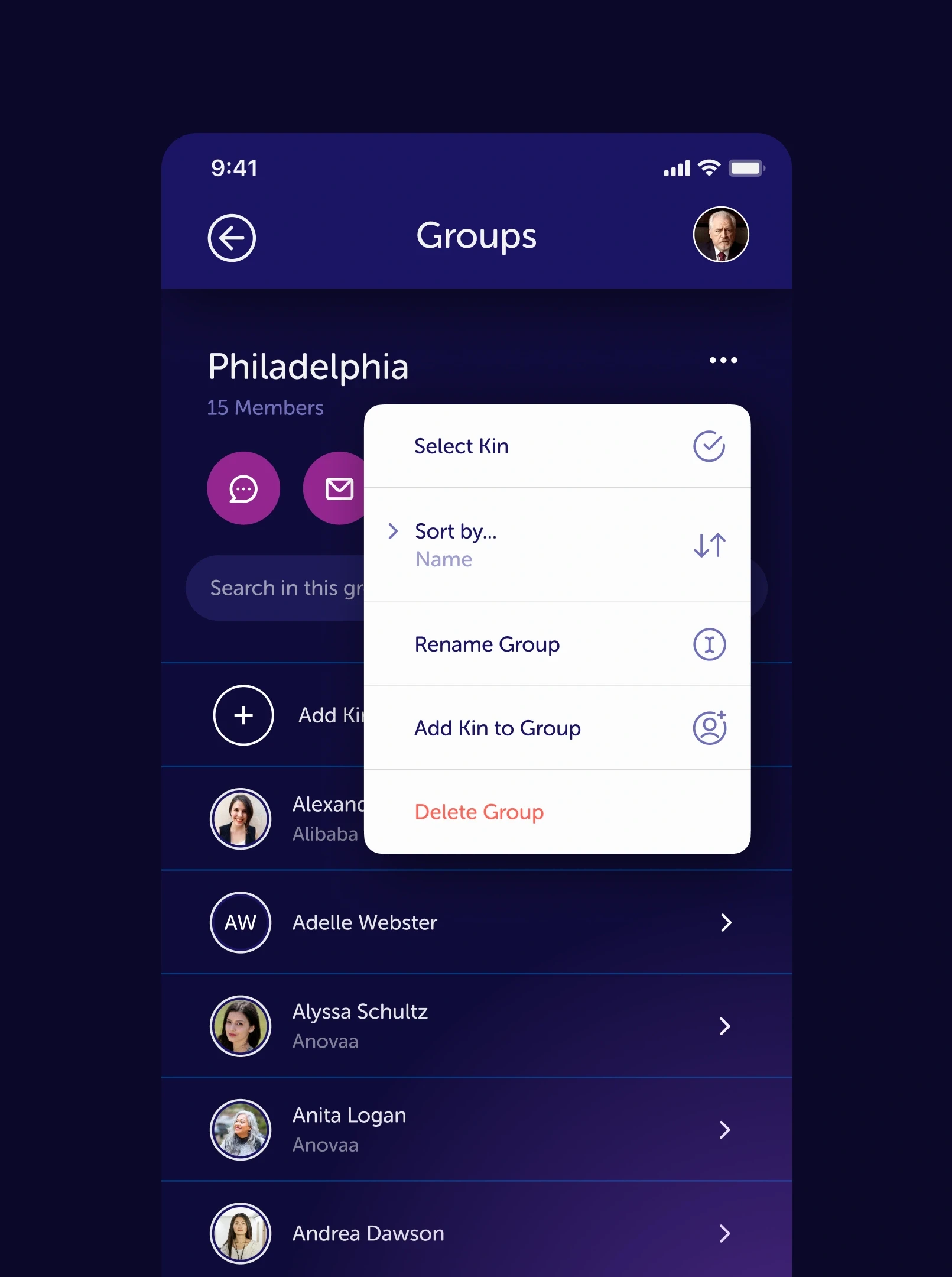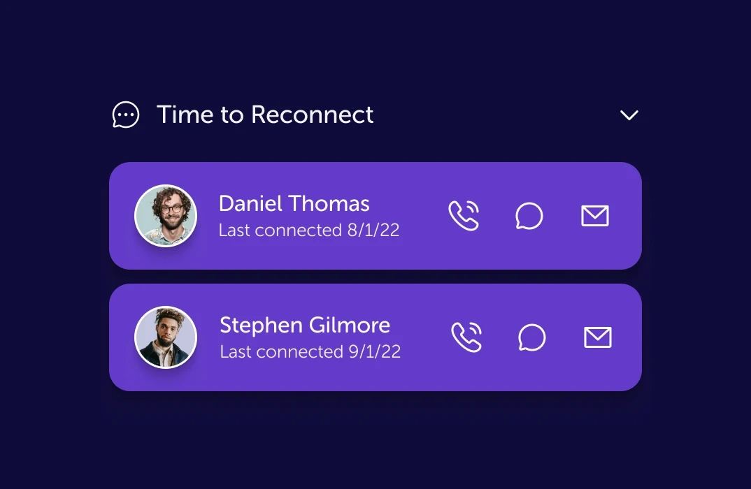 Kinship came to us with a bold mission: help people stay closer to the ones who matter most. Together, we reimagined the core Kinship experience from the ground up, crafting an intuitive, emotionally intelligent interface that makes keeping in touch feel less like a chore and more like second nature.